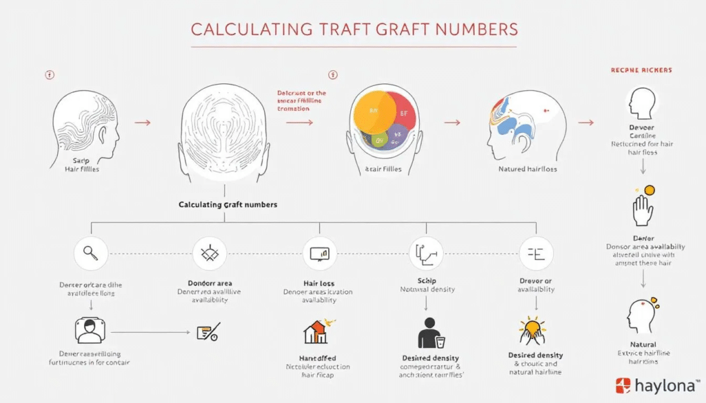 Finally, hair characteristics such as thickness, texture, and color determine the number of grafts necessary for effective coverage.